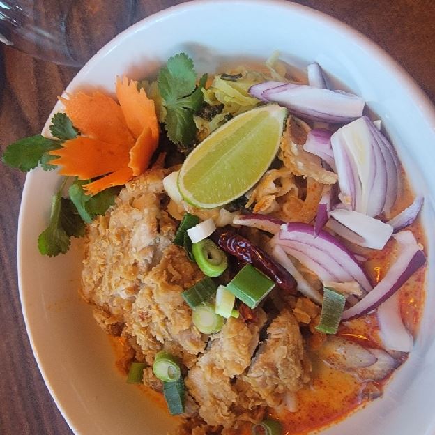 Mixed vegetable, tofu and mock duck, green chili paste, coconut milk.