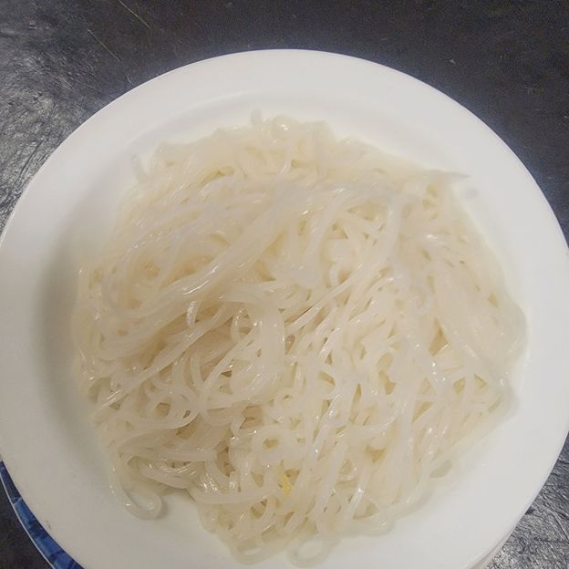 Skinny rice noodles, egg, chives, bean sprouts and grounded peanut