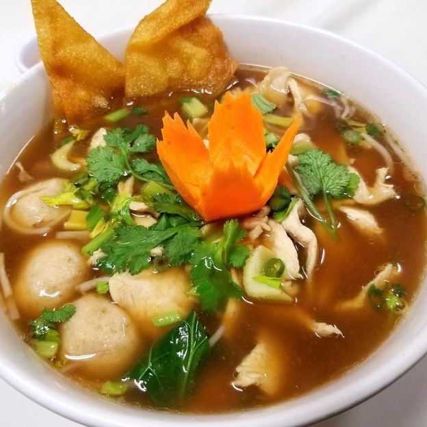 Grilled marinated slice steak, lettuce, cucumber, onion, tomatoes, celery with spicy fish sauce and lime juice.