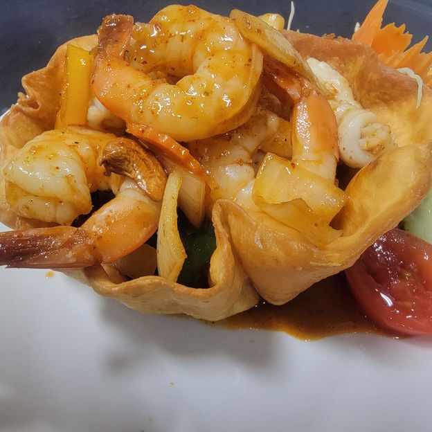 Sauteed with pineapple, cucumbers, onions, tomatoes, carrots, baby corns, celery and scallion