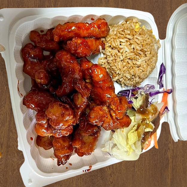 11:00am-3:00pm. Served w. Soup, Fried Rice, Egg Roll, Cheese Wonton and Choice of Salad and Fruit