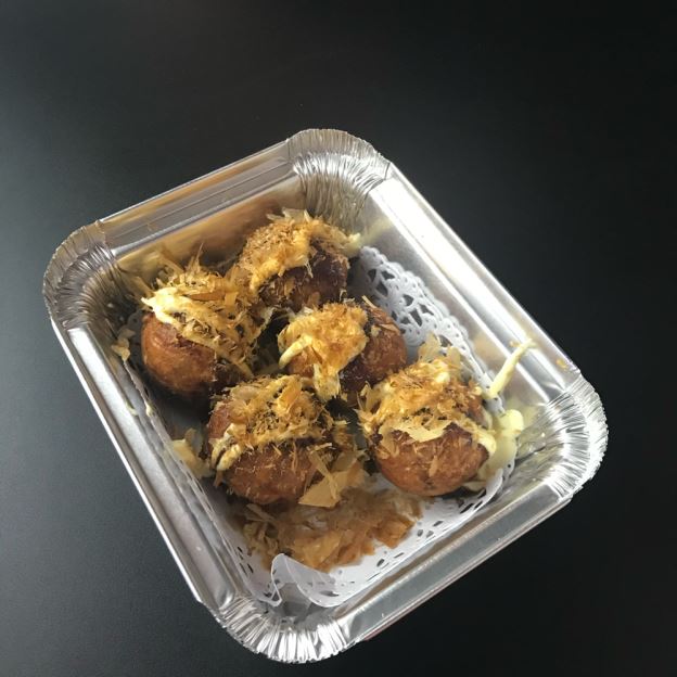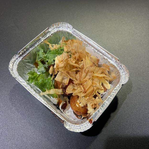Ball shaped, wheat flour based batter, filled with octopus, topped with bonito flakes and eel sauce, mayo