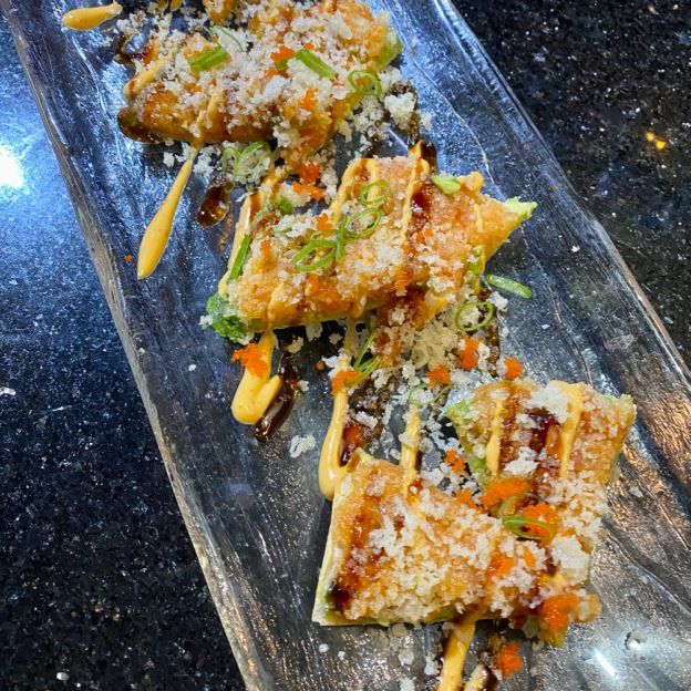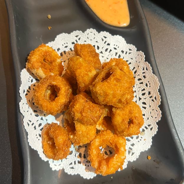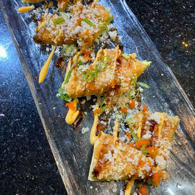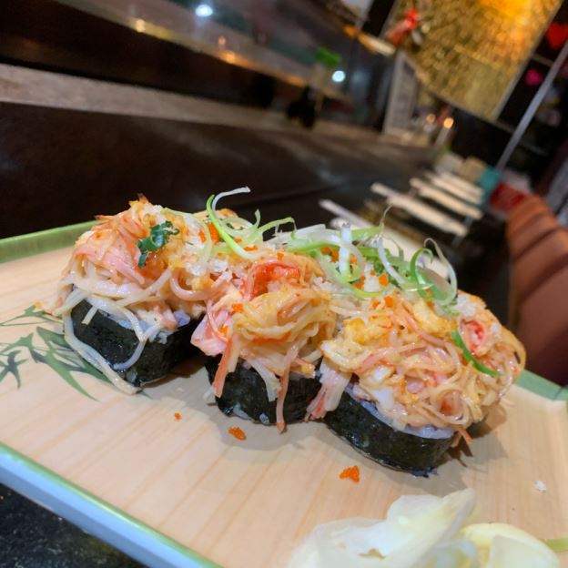 Deep fried w. cream cheese, carrot, crabmeat, scalllon and celery