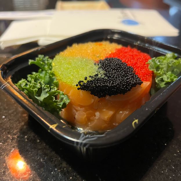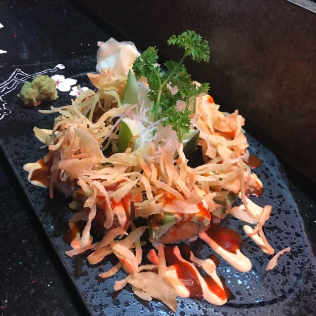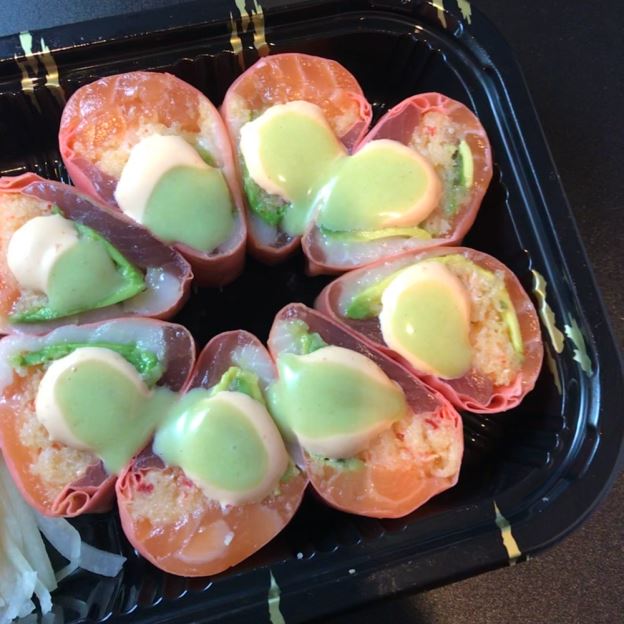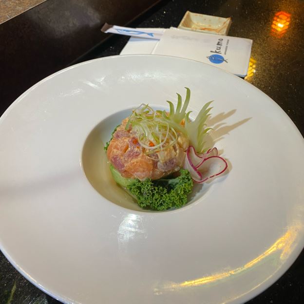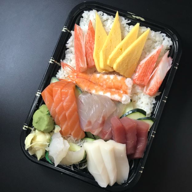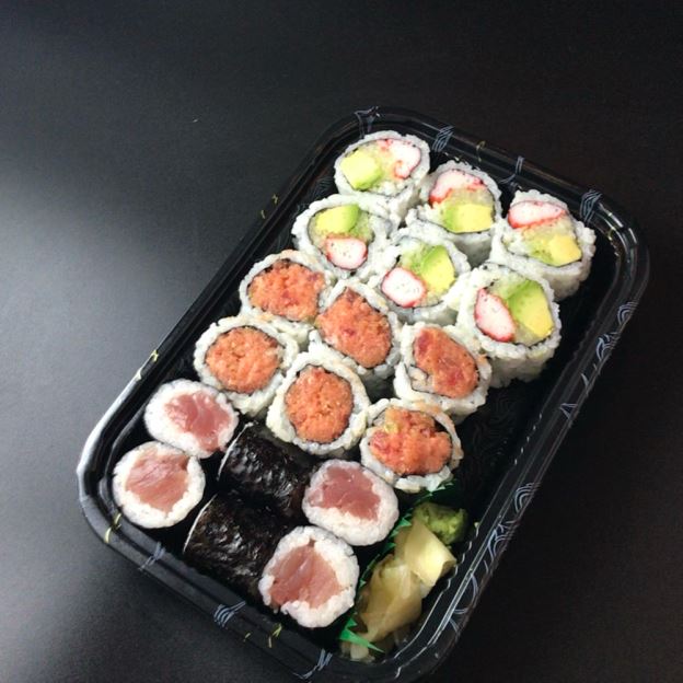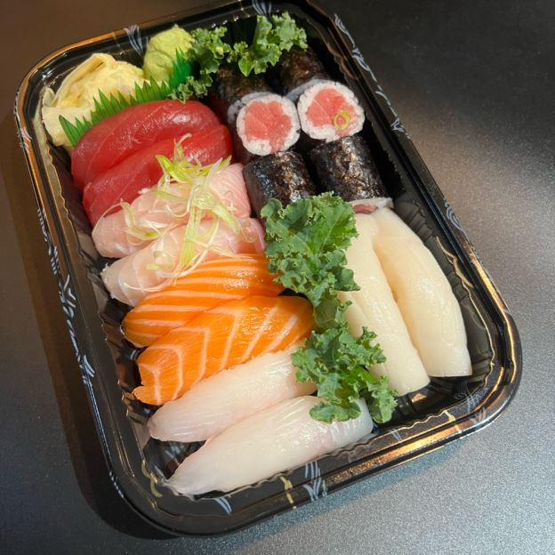 3 pcs sushi. 7 pcs sashimi & spicy tuna roll
