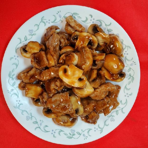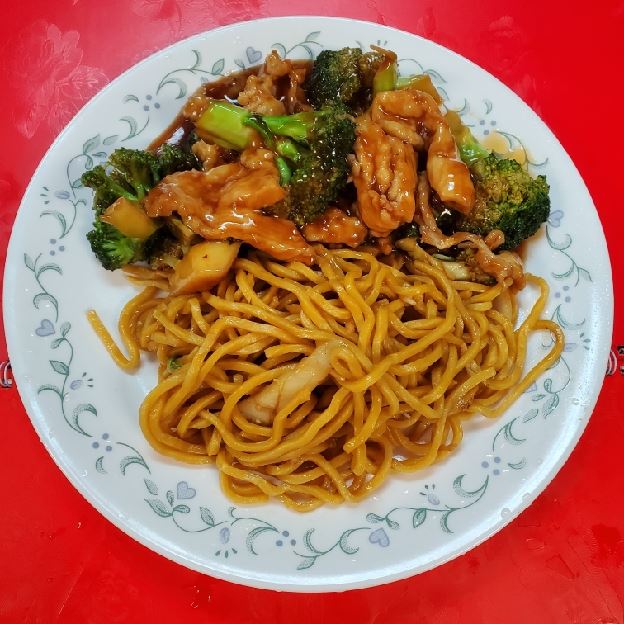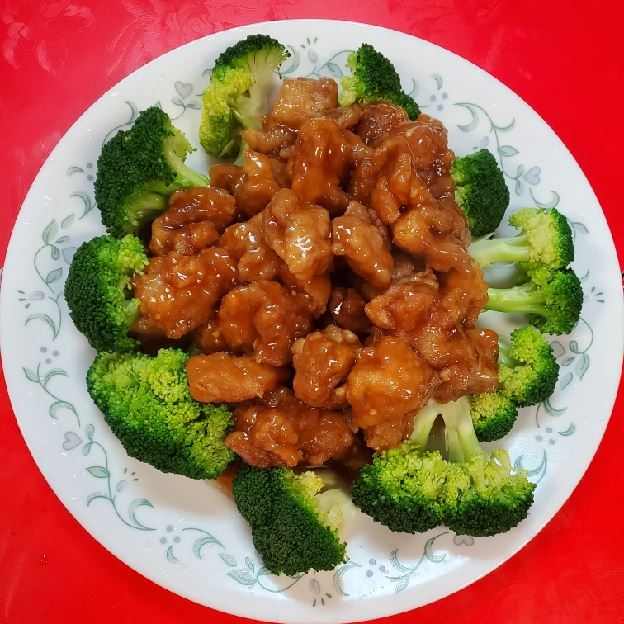 Broccoli in brown sauce. Options: rice or fried rice, beef/chicken/pork/shrimp fried rice or lo mein add-ons.