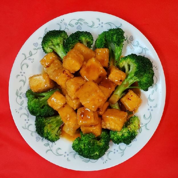 Tofu and mixed vegetables, choice of rice or lo mein with beef, chicken, pork, or shrimp add-ons.