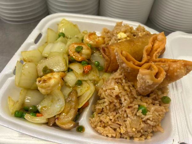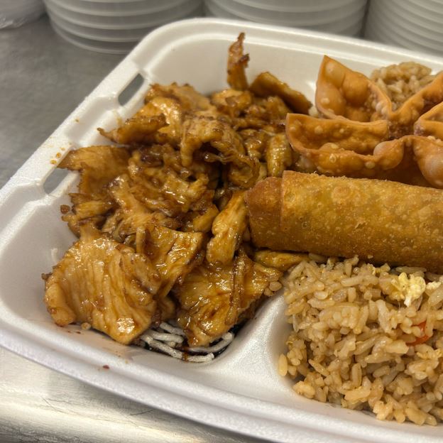 Includes egg rolls, crab rangoon, barbecued ribs, satay beef, paper wrapped chicken and fantail shrimp.
