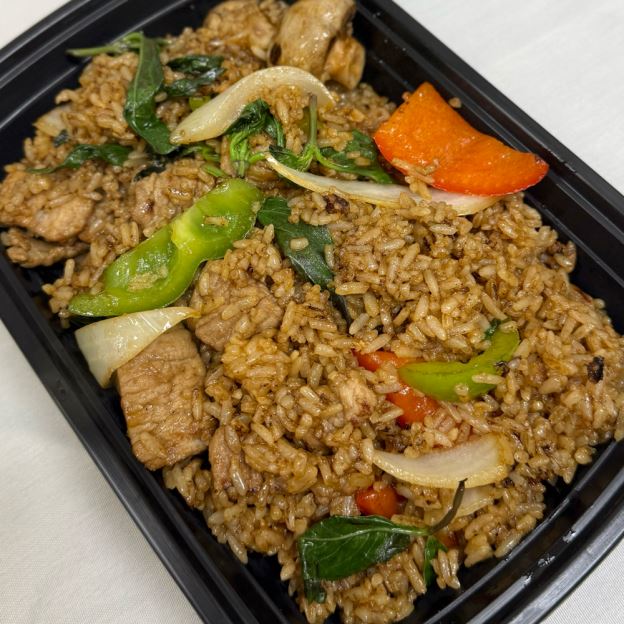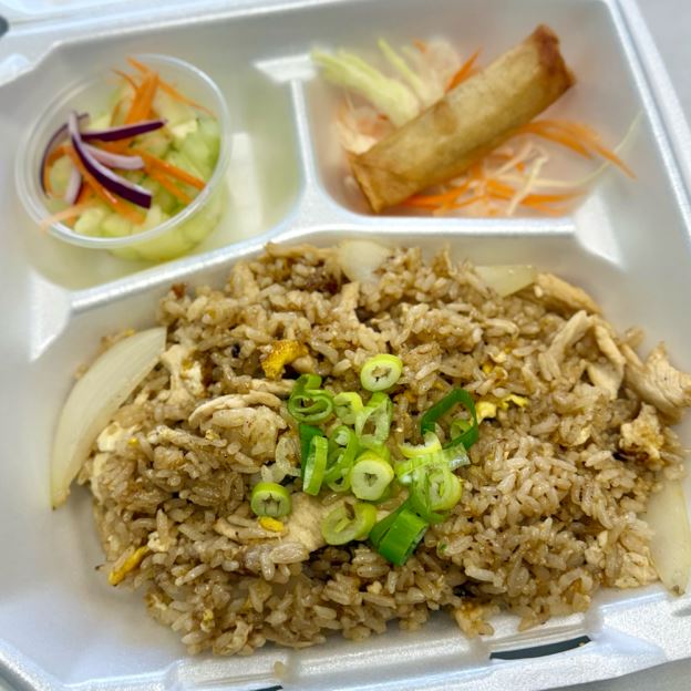 Lunch portion of our Thai Fried Rice with chicken or tofu, Cool Cucumber Salad, and veggie eggroll. Choose a different protein for additional costs.