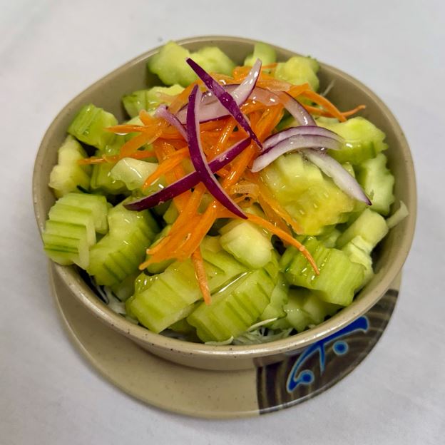 A classic Thai cucumber salad with a tangy and sweet dressing. Comes with cabbage, cucumber, carrots, and red onion.