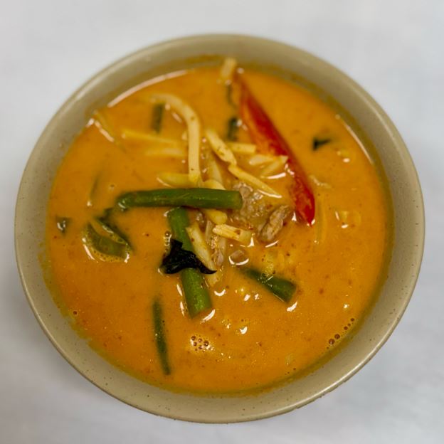 Lunch portion of our Red Curry with chicken or tofu, Cool Cucumber Salad, and veggie eggroll. Choose a different protein for additional costs. Option for brown rice.