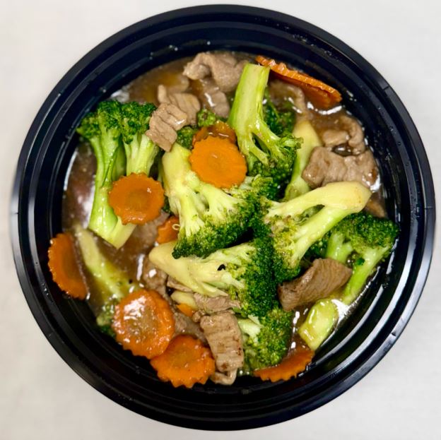 Lunch portion of our Broccoli with chicken or tofu, Cool Cucumber Salad, and veggie eggroll. Choose a different protein for additional costs. Option for brown rice.