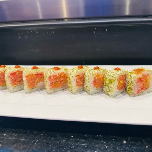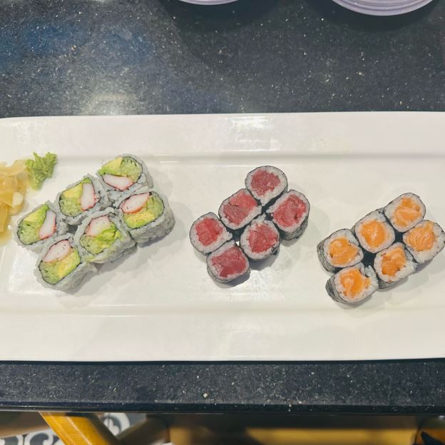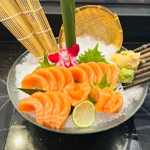 9 pcs of chef’s choice sashimi, 3 pcs sushi, and a tuna roll