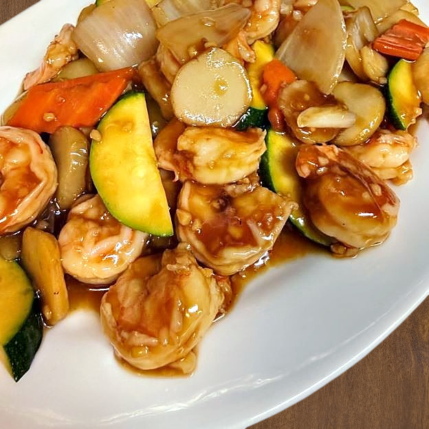 Fried Prawns, Fried Squid, Deluxe Seafood Soup. Entrée: Sweet & Sour Prawns, Scallop w. Broccoli, Seafood Fried Rice. For Party Of 3 Add: Fish Fillet w. Snow Peas. For Party Of 4, Add: Mu Shu Prawns. For Party Of 5, Add: Walnut Prawns. For Party Of 6, Add: Garlic Seafood Clay Pot. 7 Or More: Portines Of Above Increased