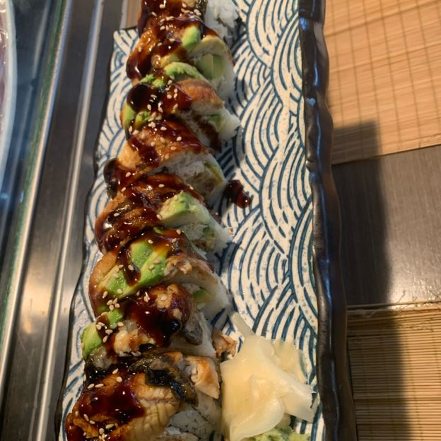 16pc sushi, shrimp tempura roll, white dragon roll, rainbow roll, hot night roll, and two hand roll