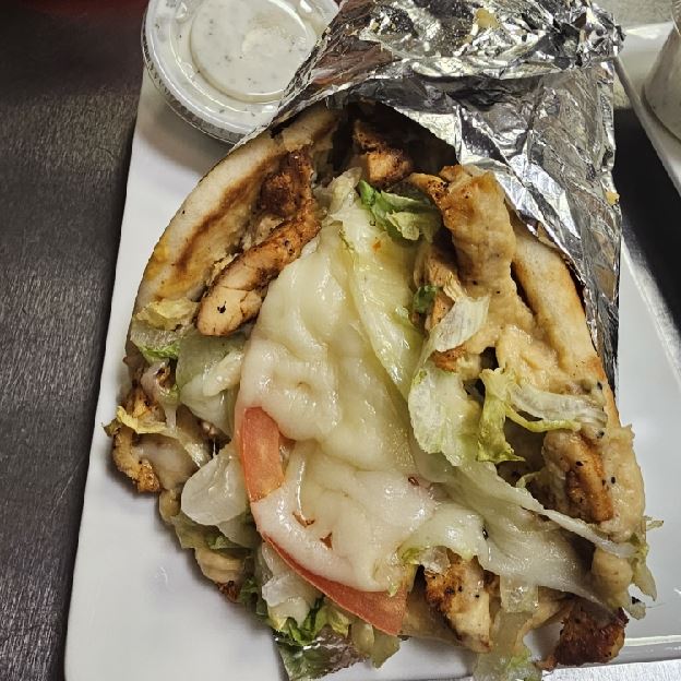 Lettuce, tomato, cucumber, bell peppers, red onions, feta cheese, black olives and house dressing and tzatziki sauce