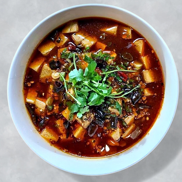 Soft Tofu cubes braised to perfection in spicy bean curd sauce and fermented black bean sauce