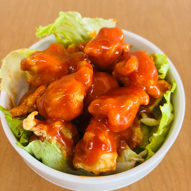 combo shrimp and chicken ,stir-fried white noodles in savory yak sauce with onion and bean sprouts and a boil egg