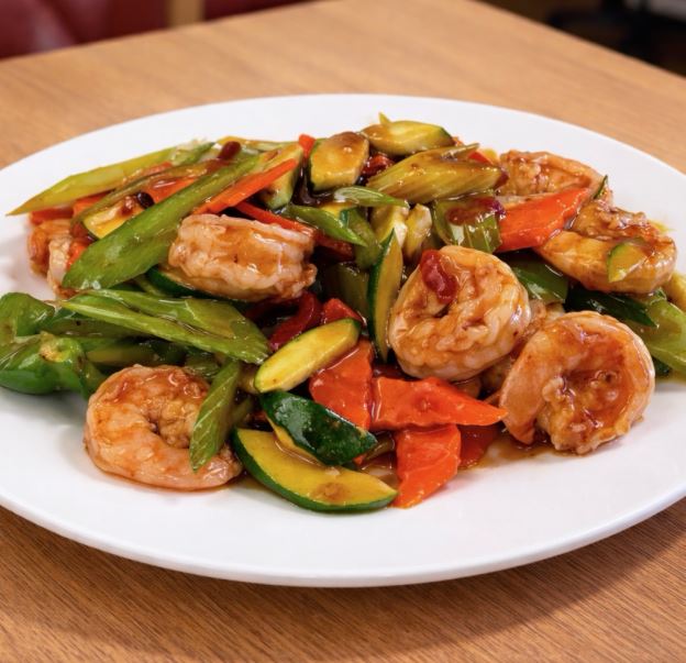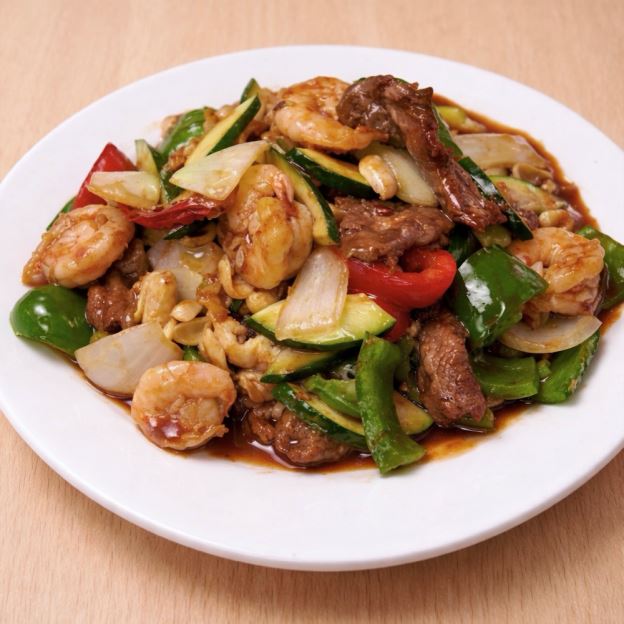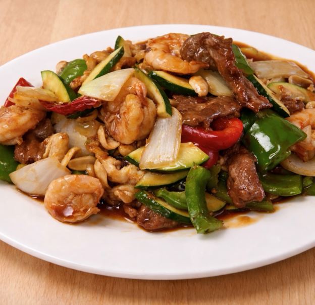 BBQ Pork, shrimp, beef, chicken and vegetable.