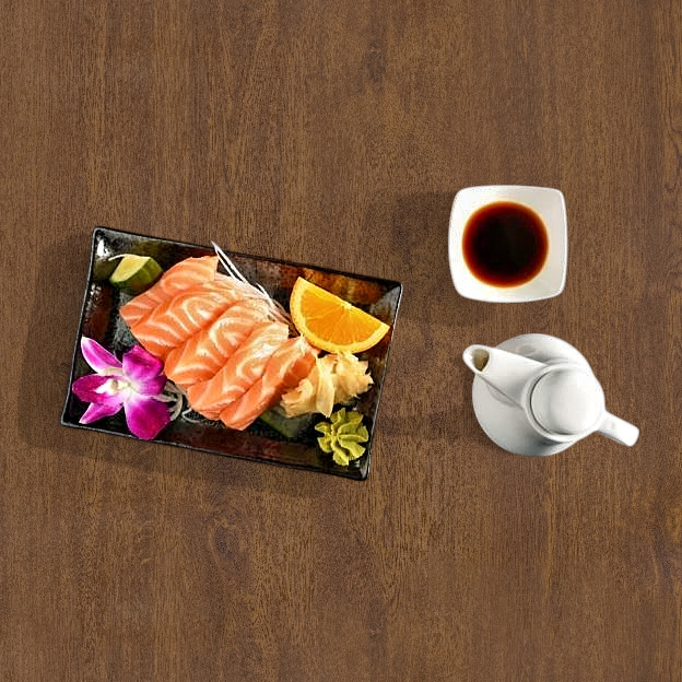 Salmon, cucumber, topped red snapper and yuzu sauce