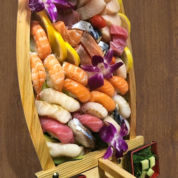Served w. miso soup, ginger dressing salad, shrimp & veggie tempuras & 4 pcs of california rolls