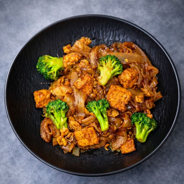 Breaded chicken stir-fried with broccoli in General Tao's sauce, topped with chopped green onion and sesame seed