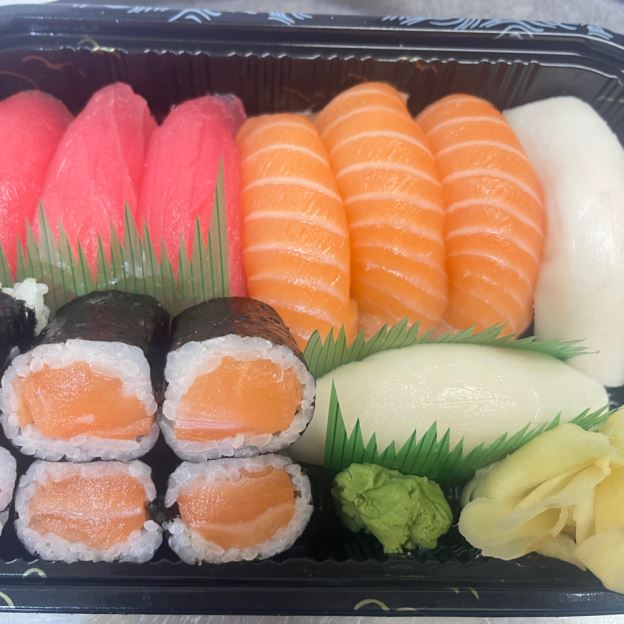 2 pcs sushi, 2 pcs sashimi, 1 spicy roll