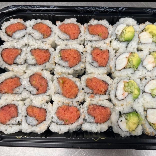 Crab, Cucumber, Avocado Top: Tuna, Salmon with Fish, Avocado