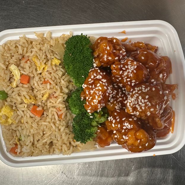 Lunch: 11:00AM - 3:30PM. Served with fried rice or white rice and chicken egg roll or bottled water.