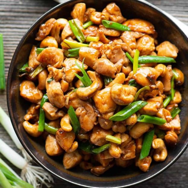 A spicy delight chicken beef. and large shrimp with vegetables sauteed in our hor pepper sauce and garnished with peanuts