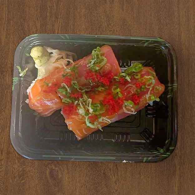 Tuna, salmon, orange, mango, Fuji apple and cu with special sauce.