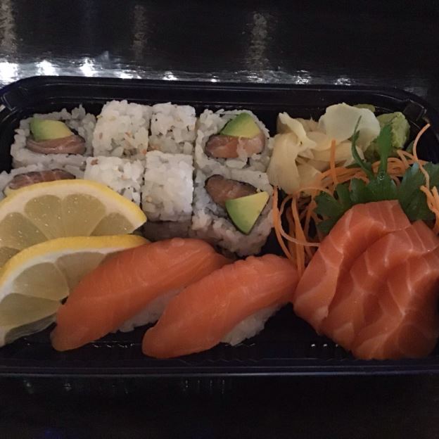 11:00am - 3:00 pm; Served with soup or salad, 4 pcs California roll and white rice; *Brown Rice or Fried Rice +$1.50 Extra