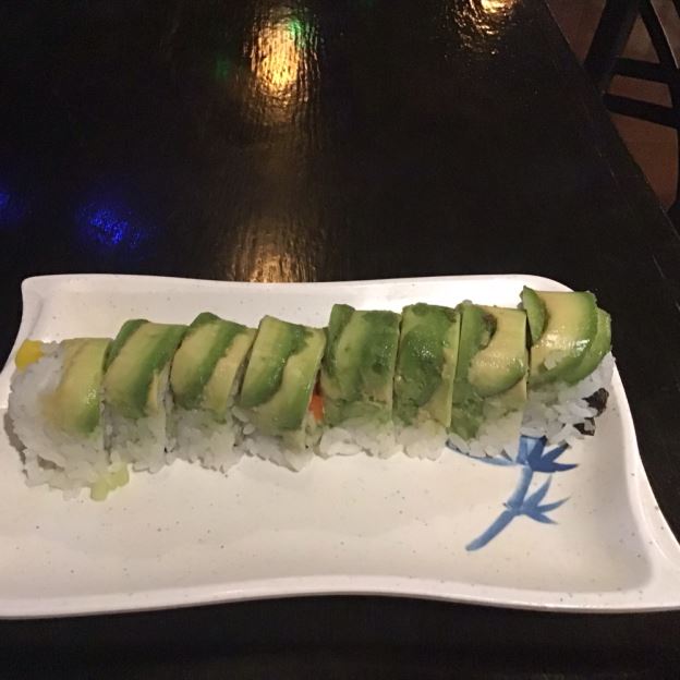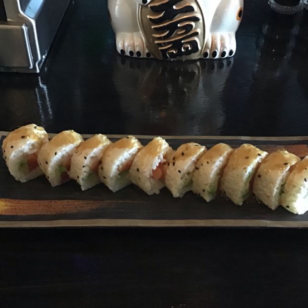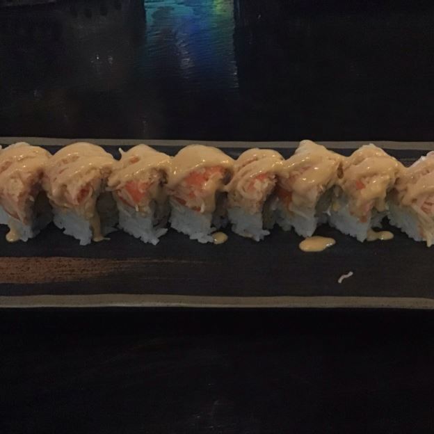 Spicy tuna around four skin, lightly fried on guacamole, spicy mayo and eel sauce