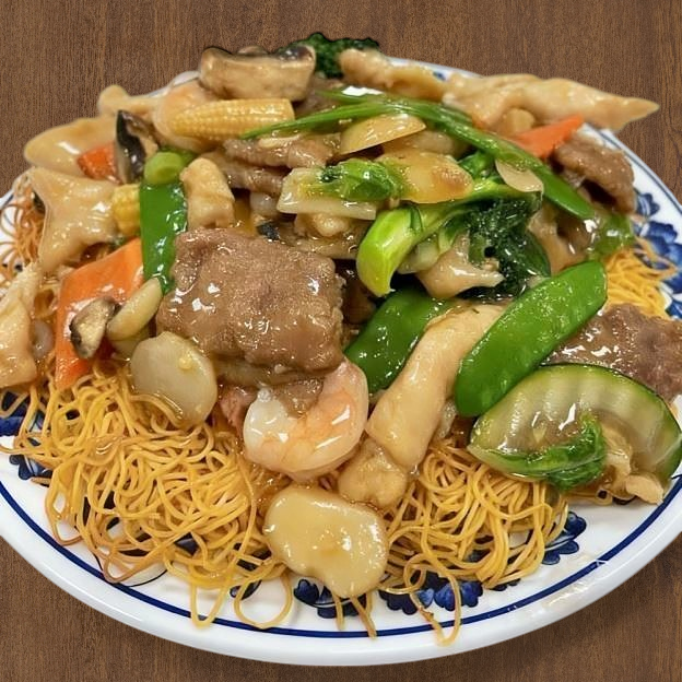 Available Daily Until 4 pm; Includes 1 Lunch Sized Entrée, Fried Rice and Chow Mein Noodles. We will Charge $1.00 Extra for Steamed Vegetables; Corn Egg Flower Soup will be Served for Dine-In Customers Only.