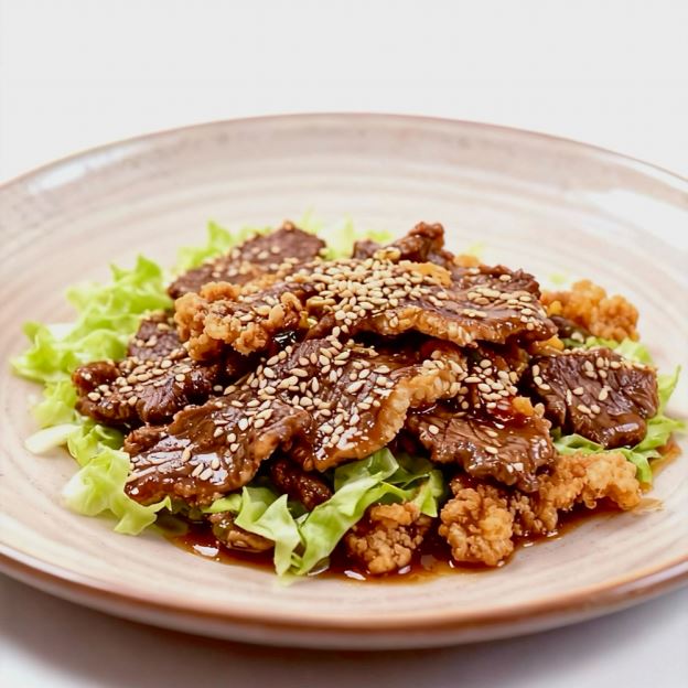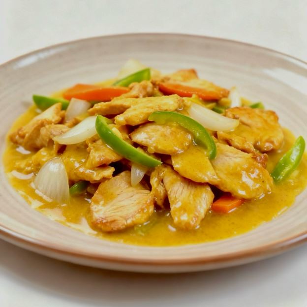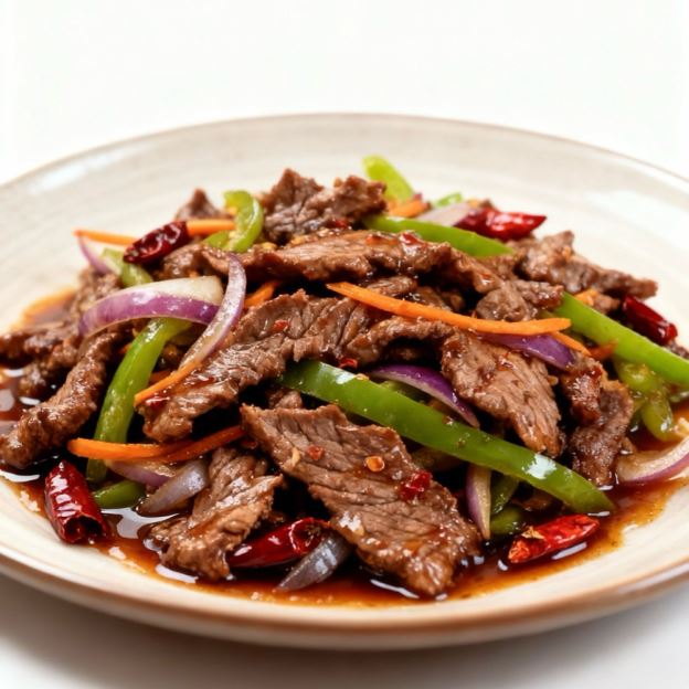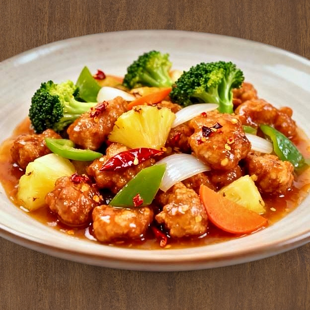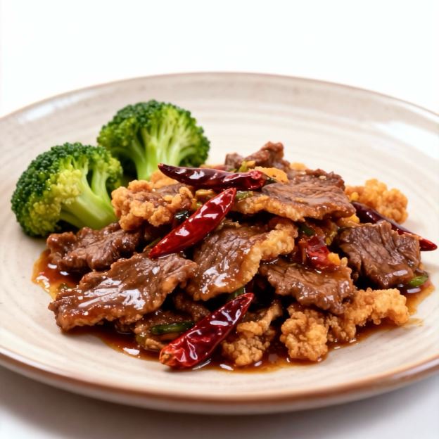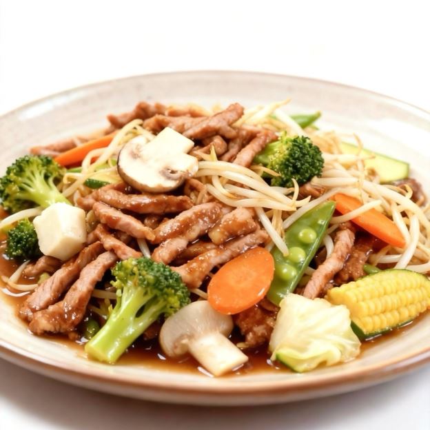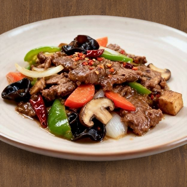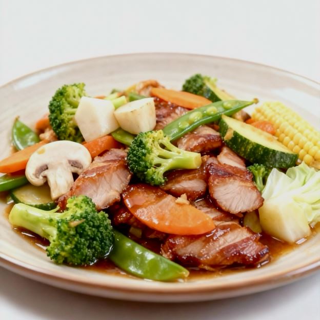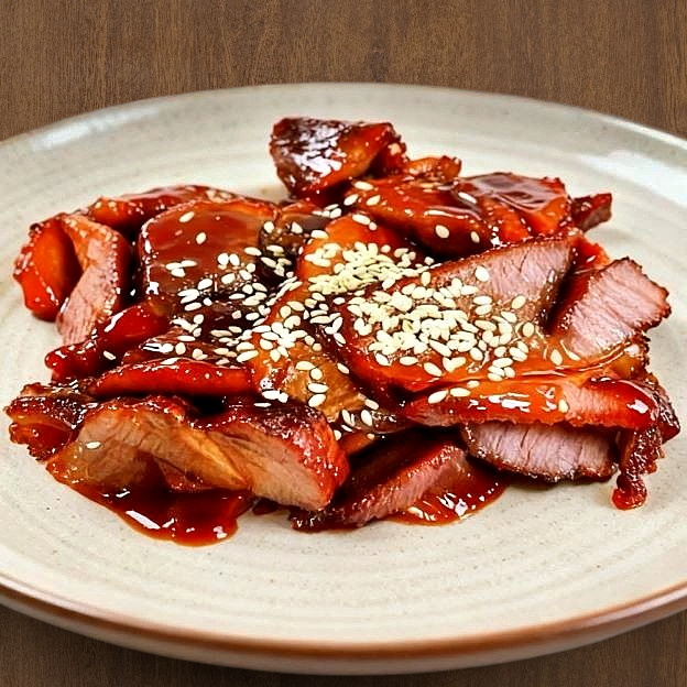 Grilled BBQ pork stir fried with a sweet BBQ sauce.
