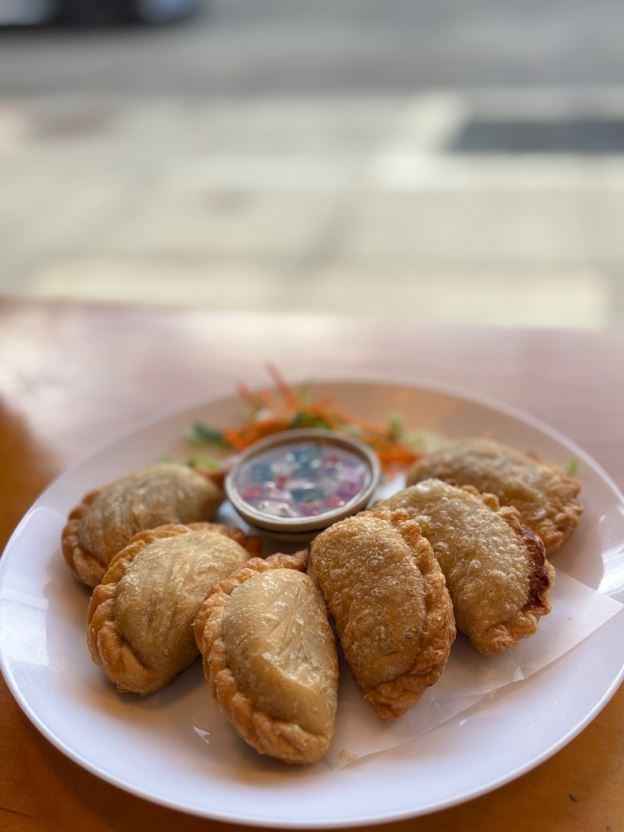 3 Chicken Puffs & 3Veggie Puffs : sweet potato, onion, carrot, cilantro serve with cucumber sauce on side