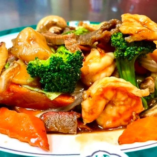 Scallop, Prawn, BBQ Pork, Chicken & Beef with Assorted Vegetable .Rice is not included