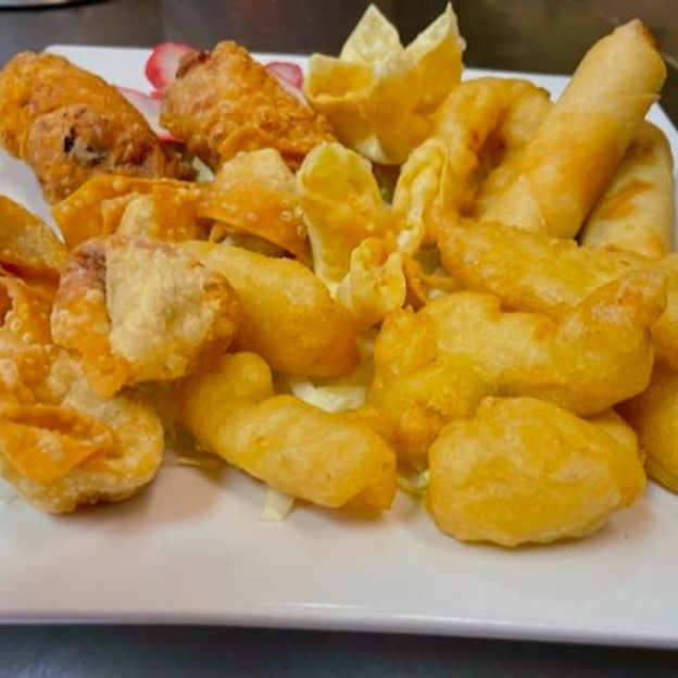Egg Roll(2), Chicken Wing(2), Crab Rangoon(2), Fried Prawn(2), BBQ Pork(4), Fried Wonton (6), Chicken Fingers (4)