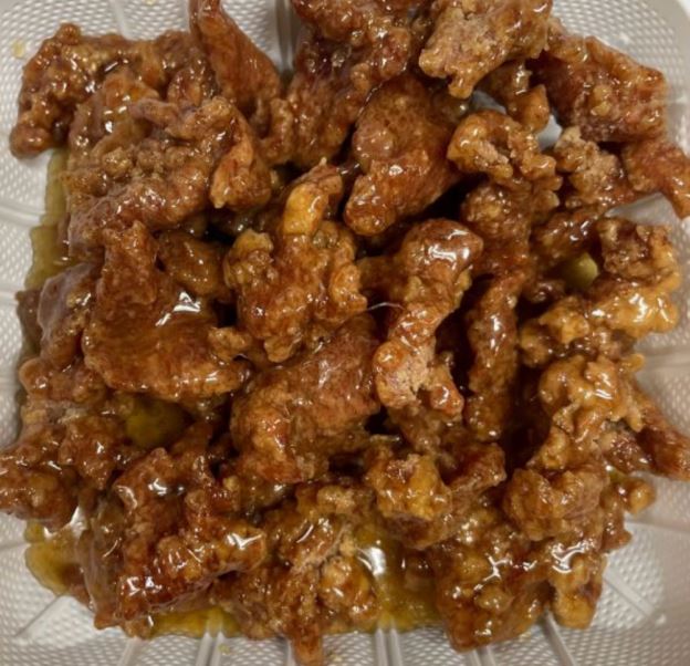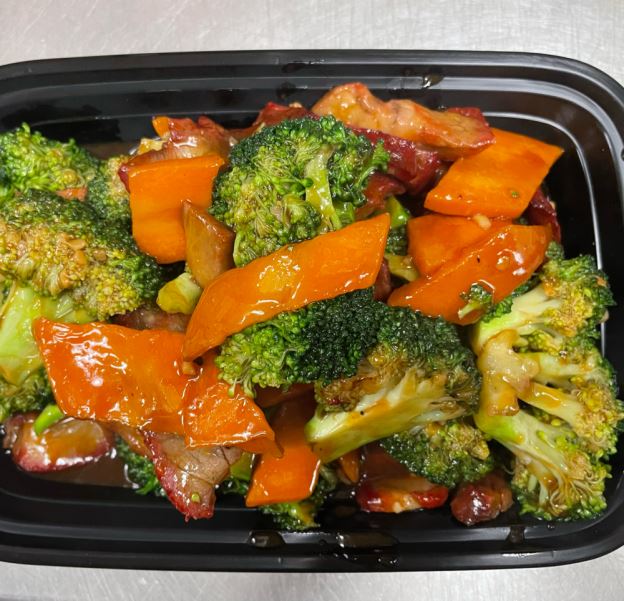 Tender sliced pork, marinated in special Chine. barbecue sauce.