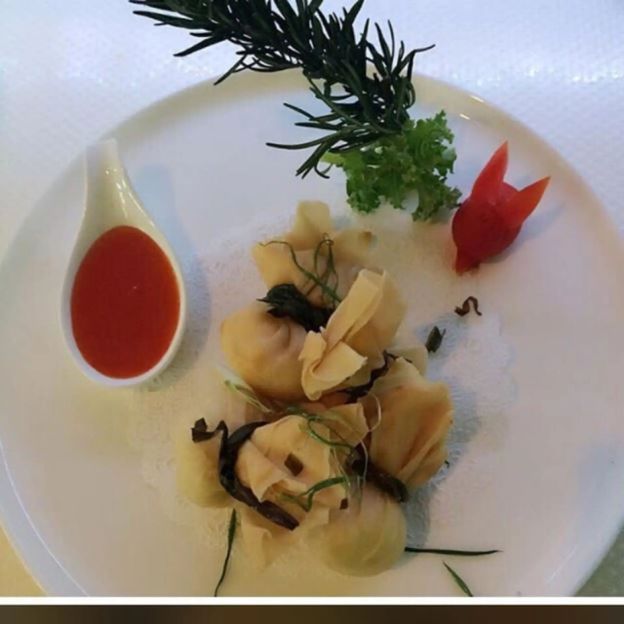 Vegetarian broth with veggie dumpling.