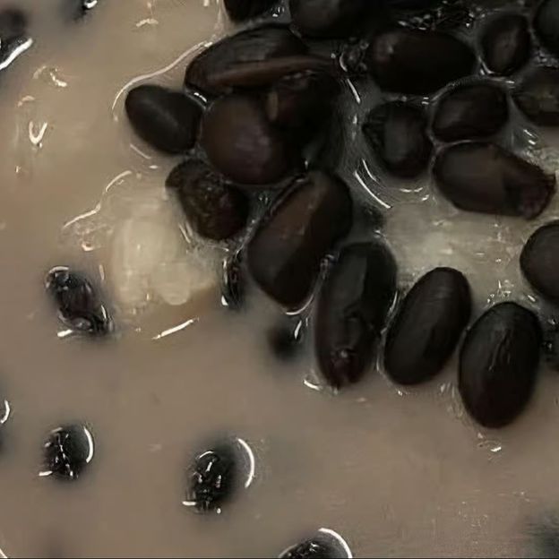 Sweet sticky rice simmer in coconut milk with black beans, offering a chewy texture and a subtle sweetness.