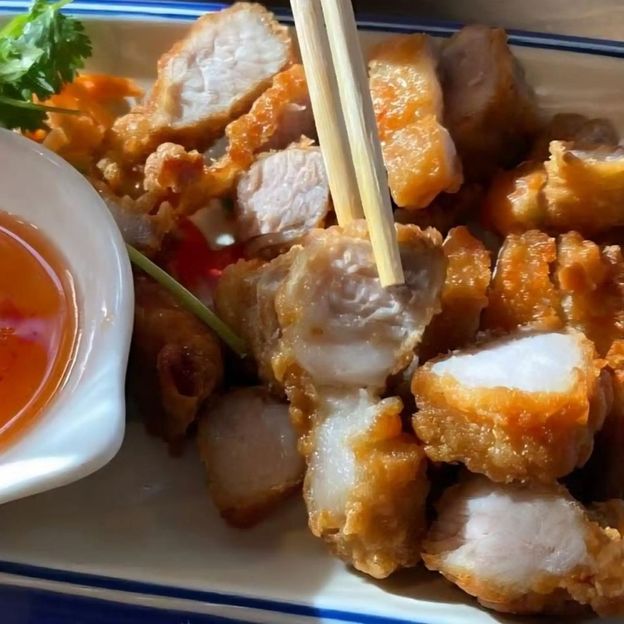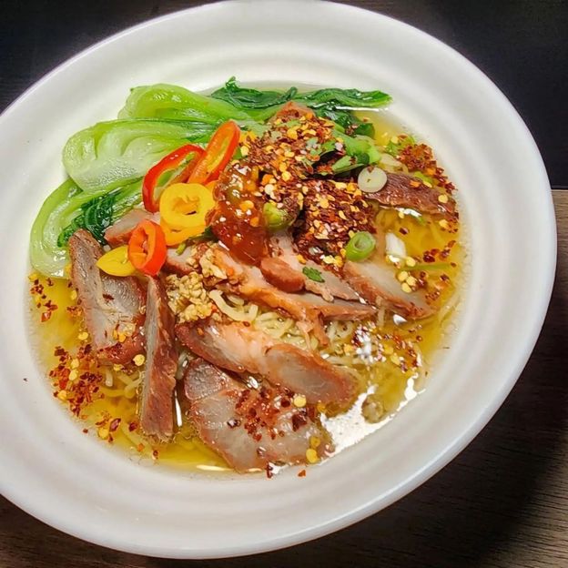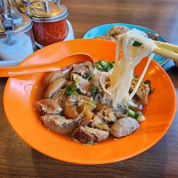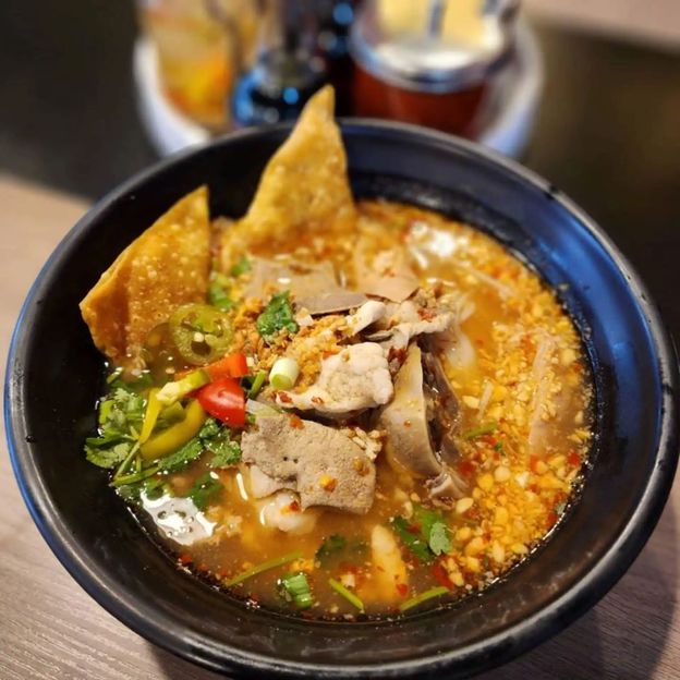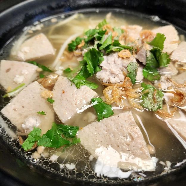 Thai fish maw soup, quail eggs, bamboo, steamed pork blood, paired with WaiWai rice noodles.