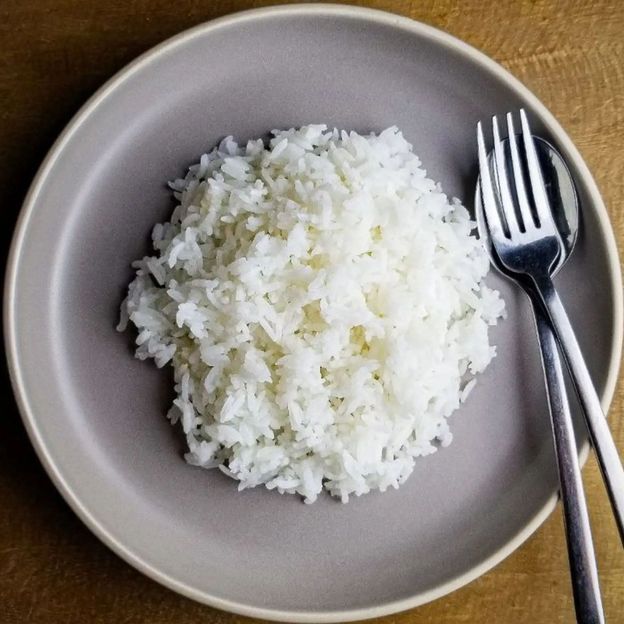 Steamed pork blood soup with pork and offal, served alongside fragrant Jasmine rice.