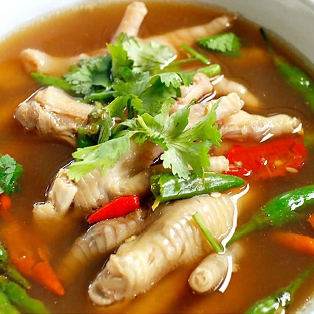 .Chicken paw in a tangy herb-infused soup, paired with fragrant Jasmine rice.