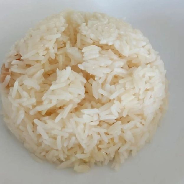 Succulent shrimp with curry, egg, onion, scallion, and celery, accompanied by fragrant Jasmine rice.