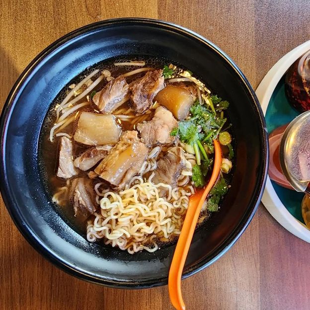 Tender beef & tendon in rich broth, paired with scallion, cilantro, and hearty instant ramen noodles.
