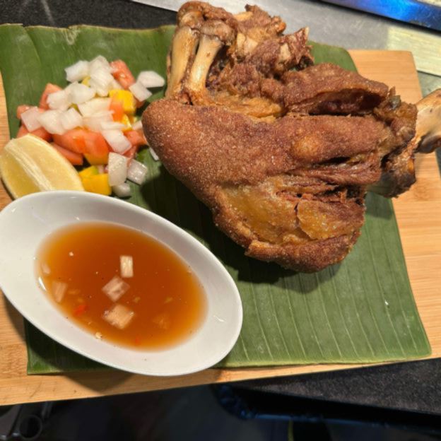 Deep fried pork & tofu served in a mixture of soy sauce, vinegar, onions, scallions & peppers
