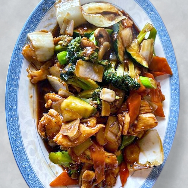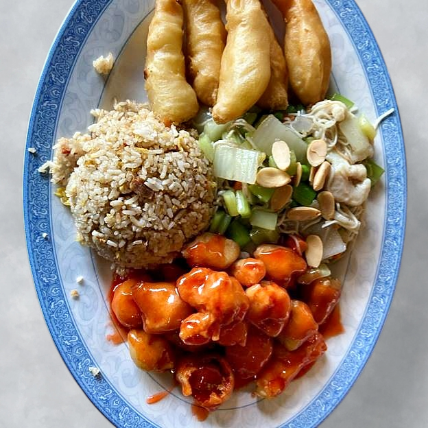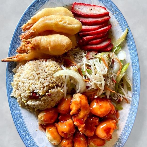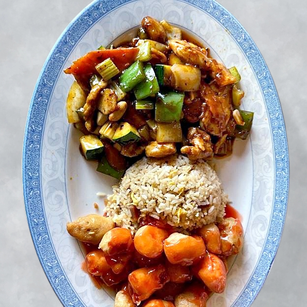 Mar Far Chicken, Almond Chicken Subgum Chow Mein, Fried Shrimp, Pork Fried Rice
