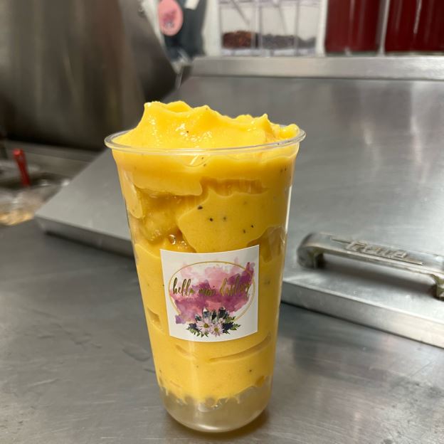 Winter melon syrup, sugar syrup, black tea, non dairy creamer
