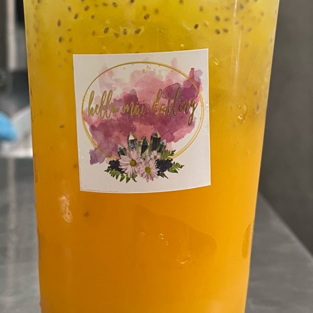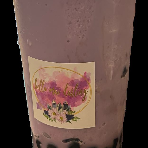 Blck tea, non dairy creamer, sugar, lavender syrup, cheese foam, lavender buds