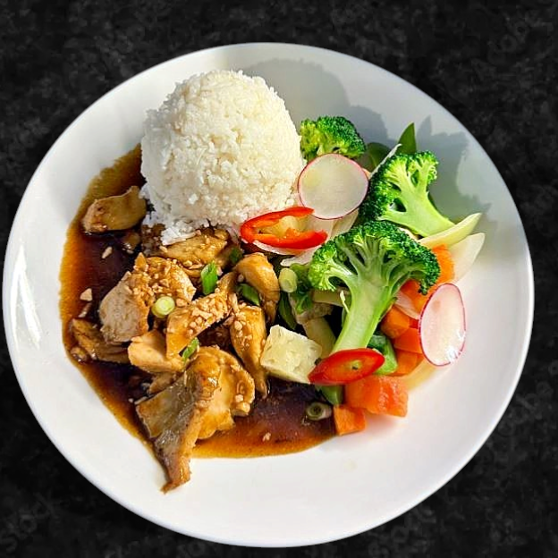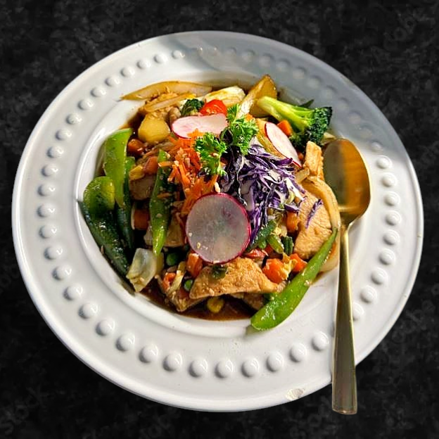 A fragrant stir-fry with fresh ginger, vegetables, and your choice of protein, in a zesty sauce.